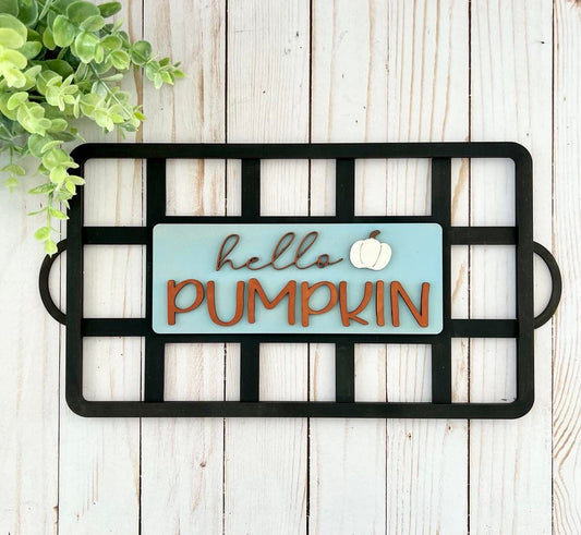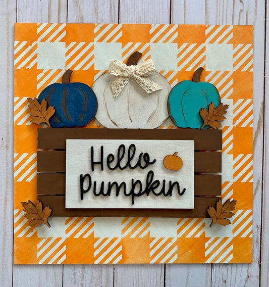 Letrero de 11.5" con diseño de cuadros escoceses de Hello Pumpkin - Listo para pintar