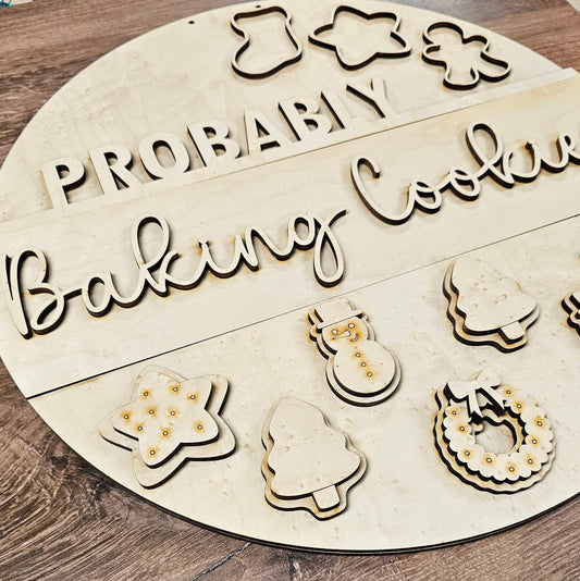 Letrero colgante para puerta "Probablemente horneando galletas"