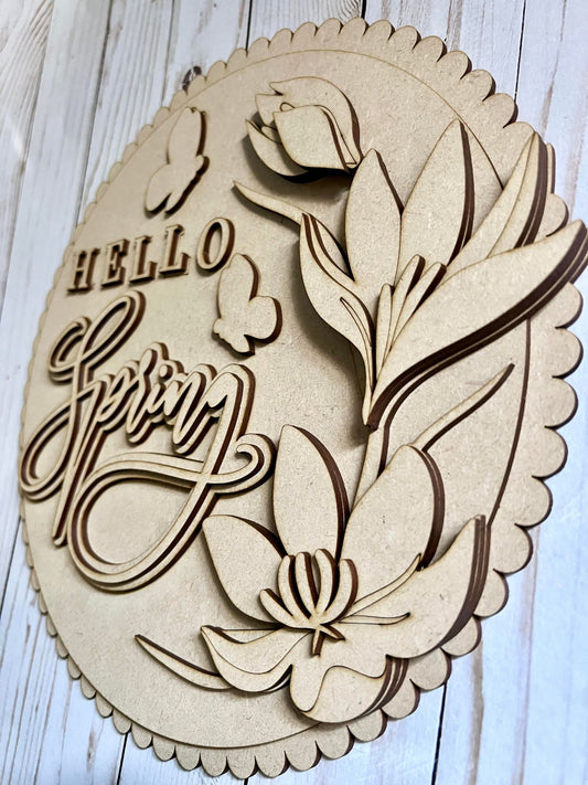 Letrero redondo de capas "Hola primavera"