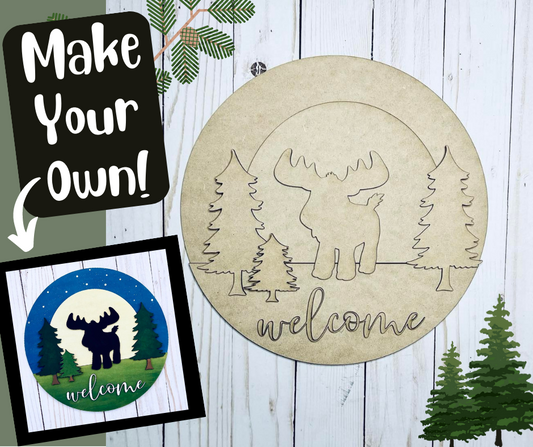 Kit de letrero de bienvenida de alce - Listo para pintar - 26 cm