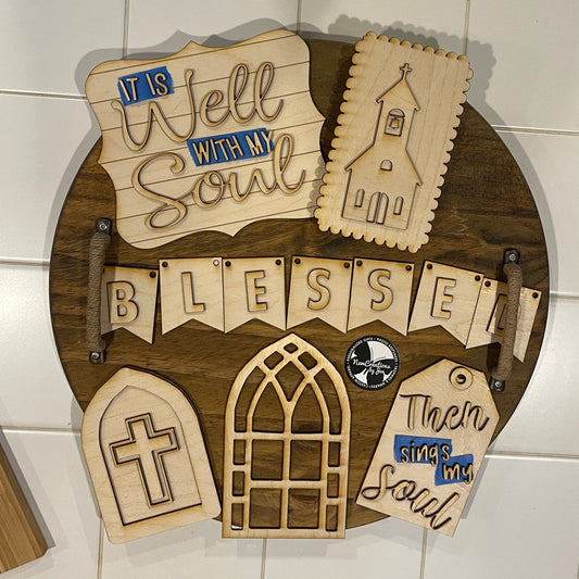 Paquete de bandejas escalonadas de estilo rústico con diseño de ventana de iglesia