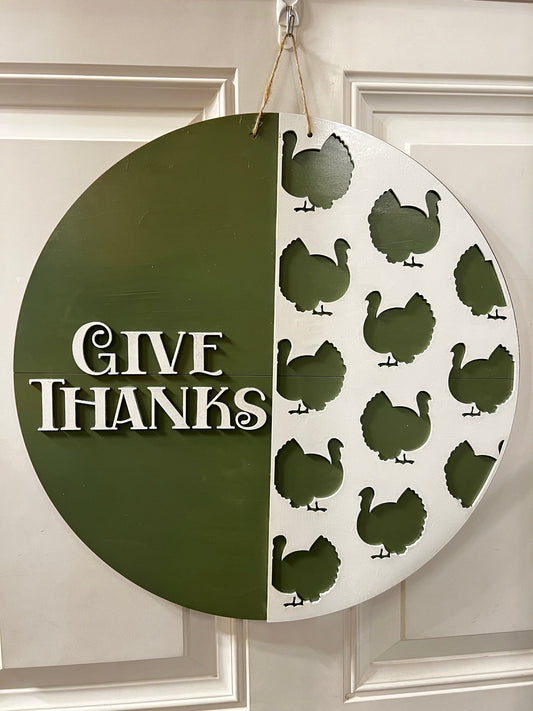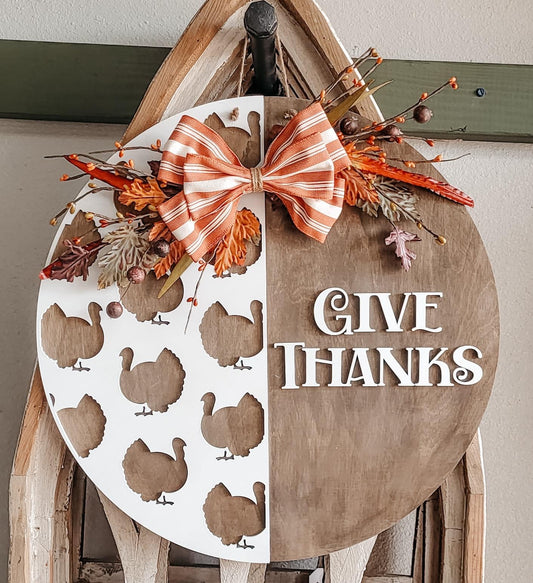 TERMINADO - Colgador de puerta con recortes de pavo "Dad gracias" - Redondo de 18"
