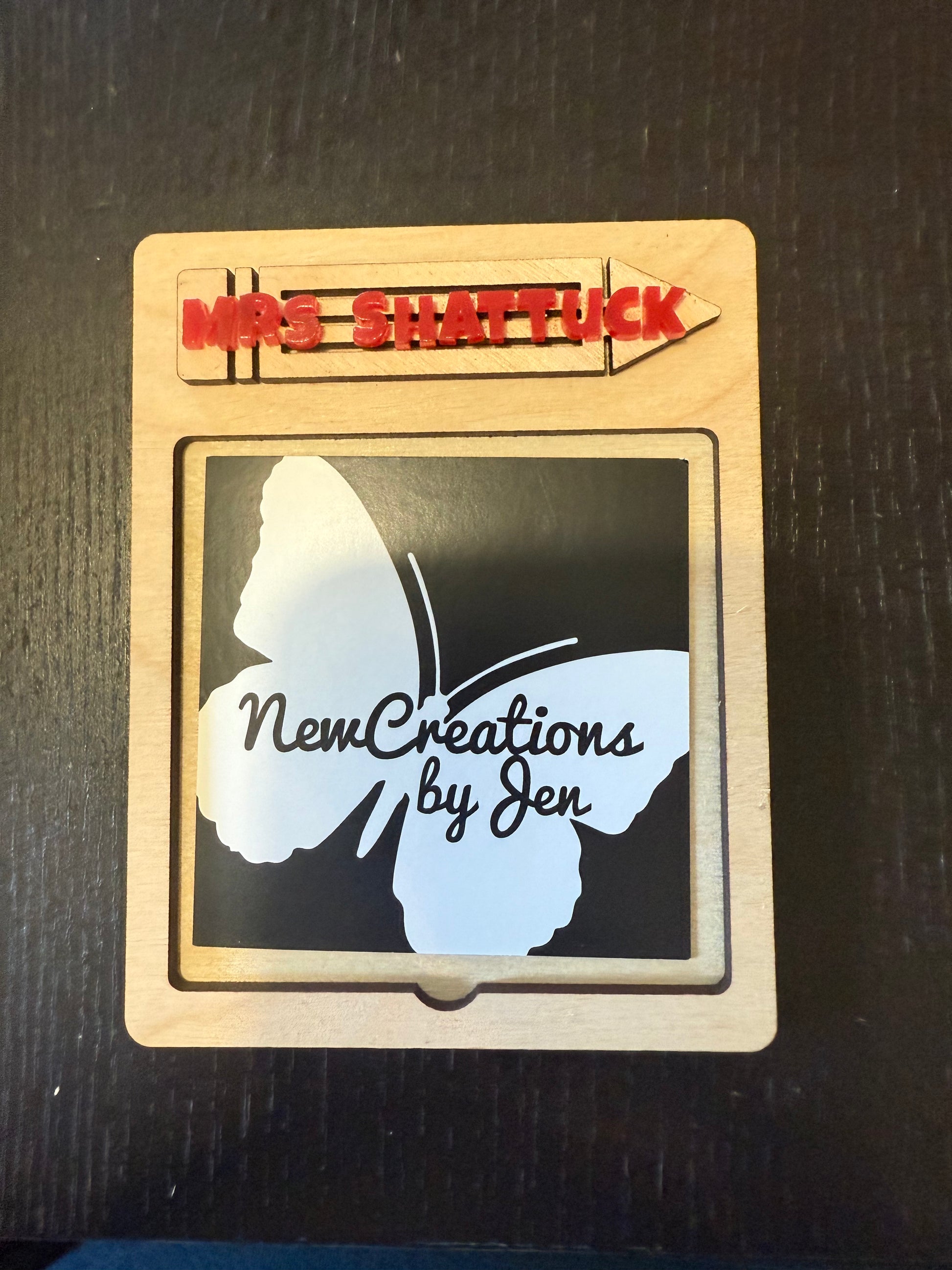 Each holder is personalized with your chosen name, title, or message, making it a thoughtful and practical gift for teachers, coworkers, or anyone who loves to stay organized. The sturdy wooden frame and bright acrylic accents make it as durable as it is eye-catching.