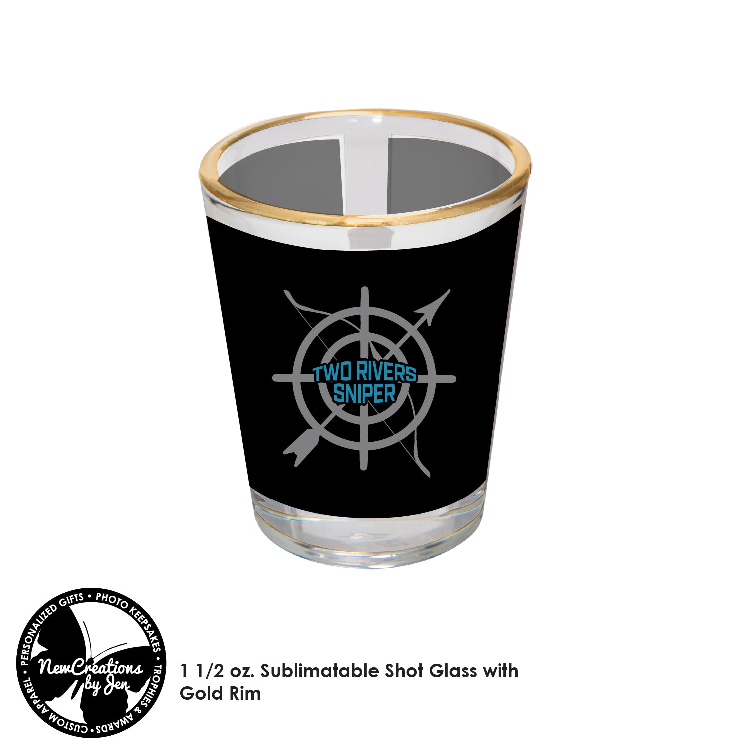 Shot Glass will be printed with artwork shown (colors are approximate)