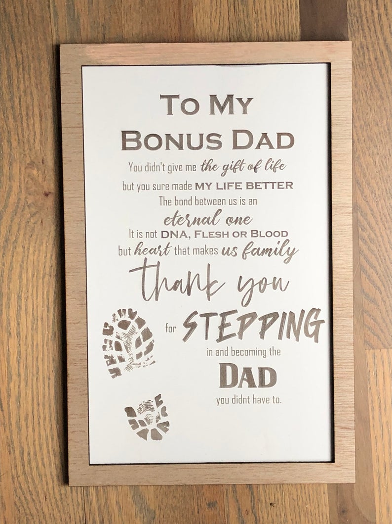 Bonus Dad - Stepping Up Sign Large 9" x 14" Sign - Finished