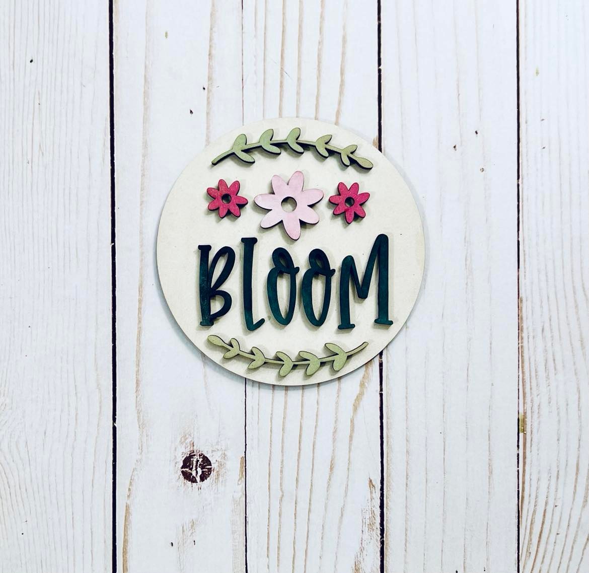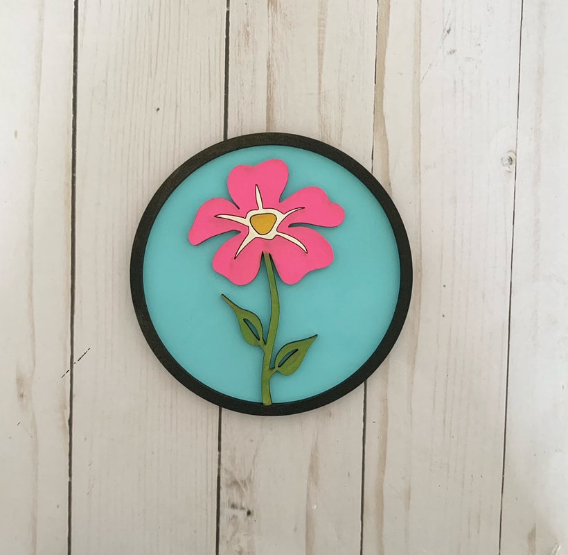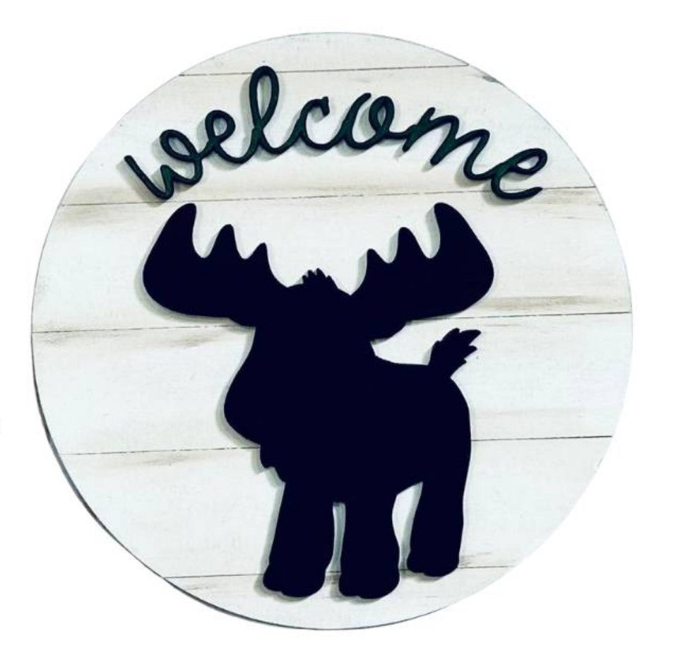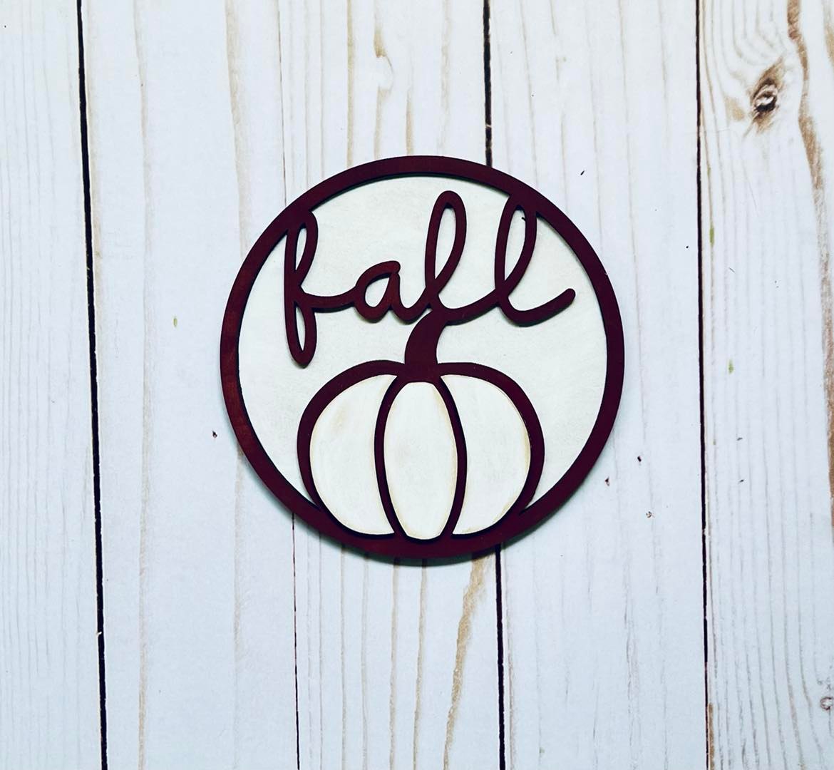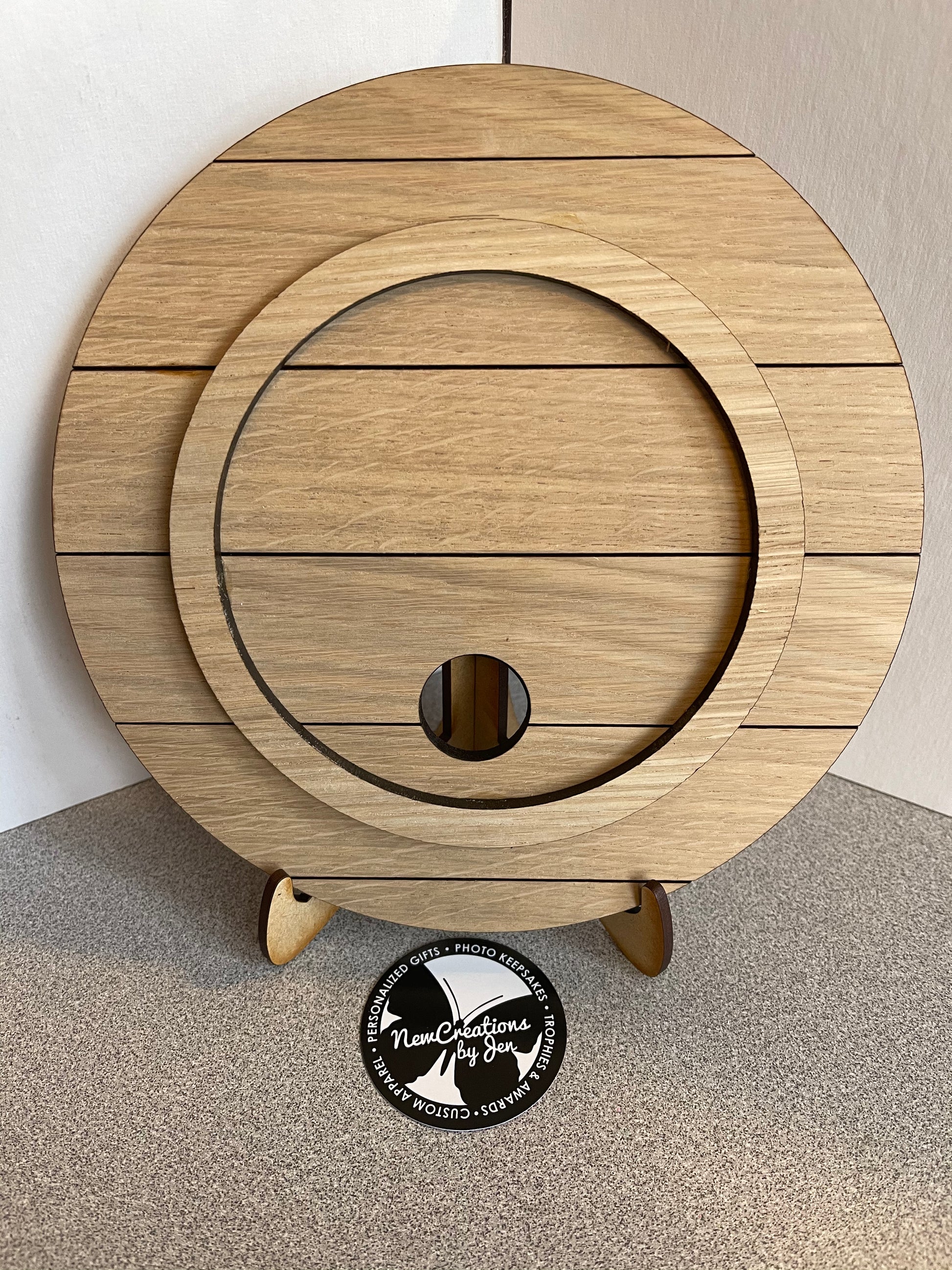 The round sign is cut out of 1/4” White Oak or similar wood and the stand and inserts are cut out of 1/8” White Birch and are ready to be painted. The stand doesn’t need to be painted but you can water down your paint and give it a beautiful whitewashed look or paint it any color you like. If you'd like a different wood for the stand or want to paint it yourself, just let us know.
