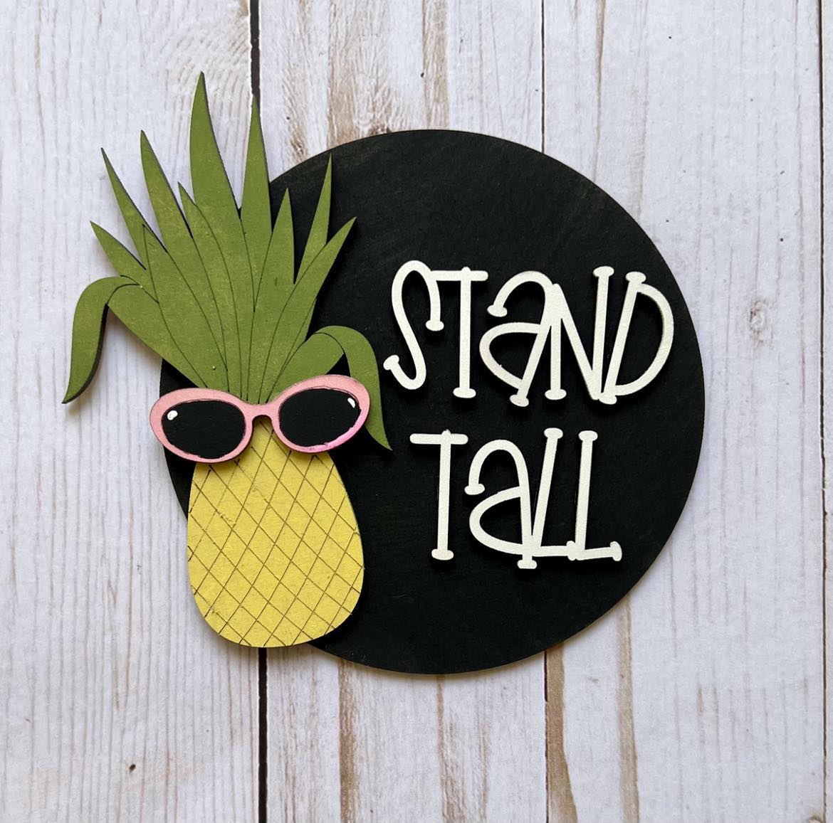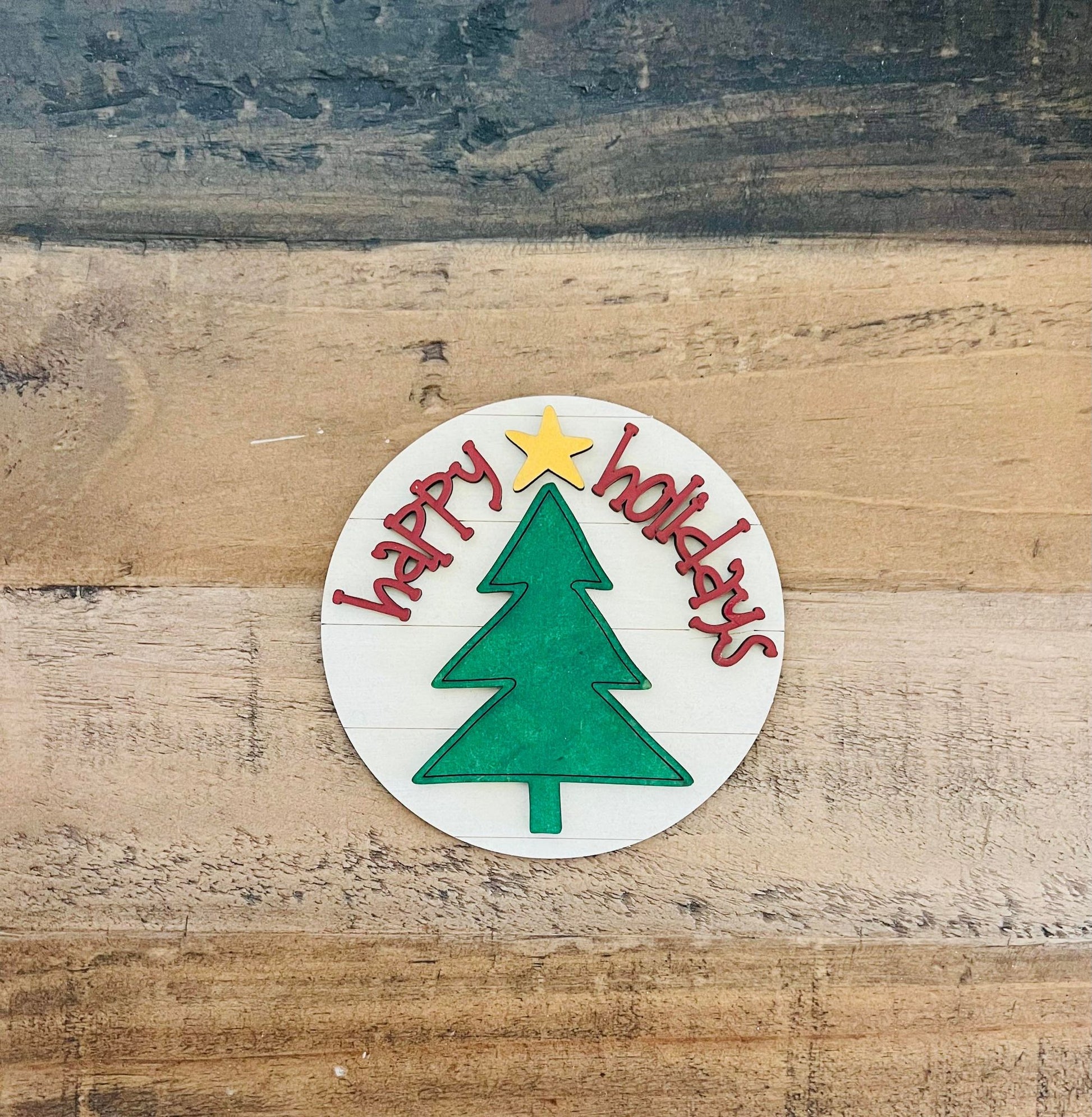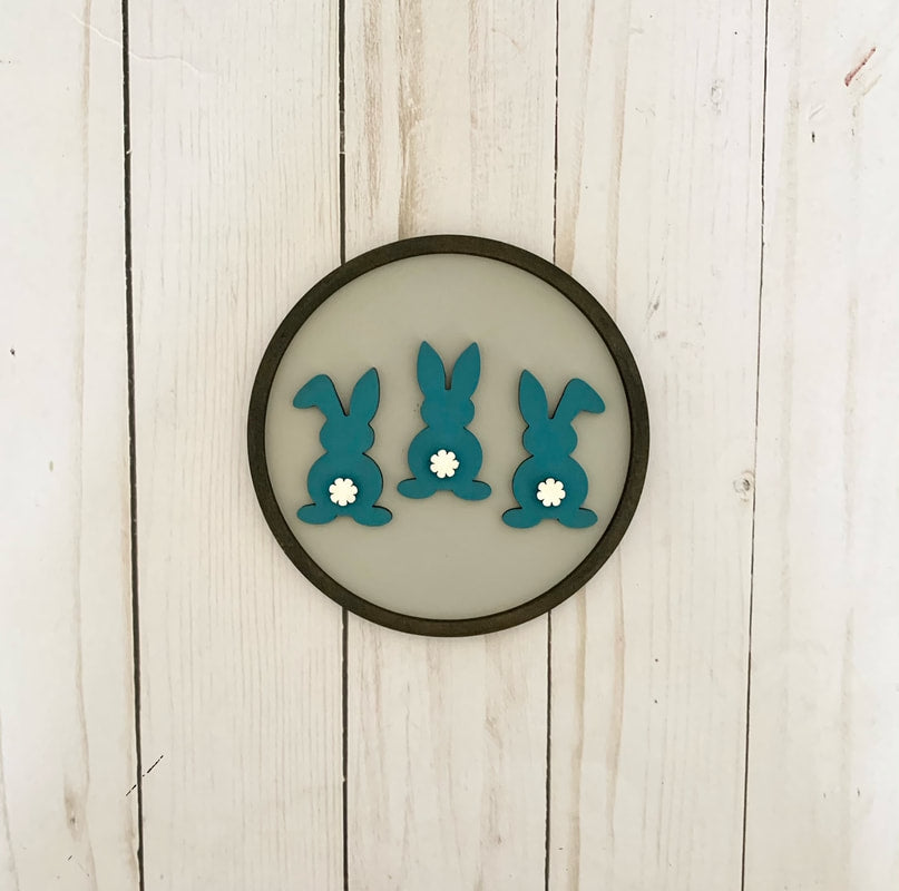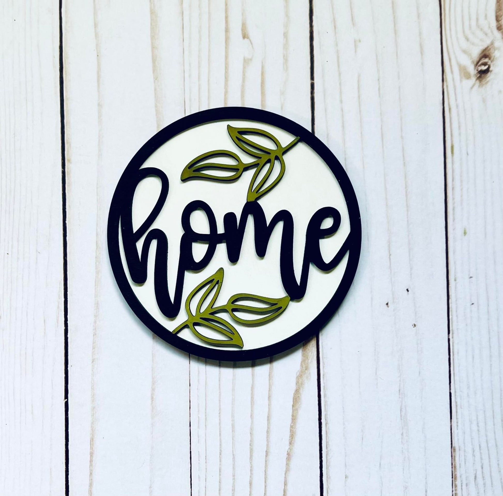The round sign is cut out of 1/4” White Oak or similar wood and the stand and inserts are cut out of 1/8” White Birch and are ready to be painted. The stand doesn’t need to be painted but you can water down your paint and give it a beautiful whitewashed look or paint it any color you like. If you'd like a different wood for the stand or want to paint it yourself, just let us know.