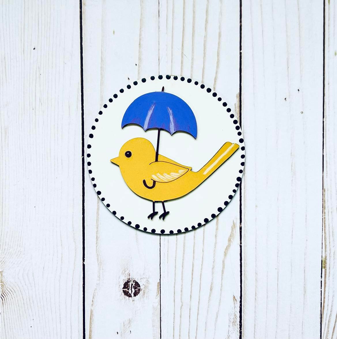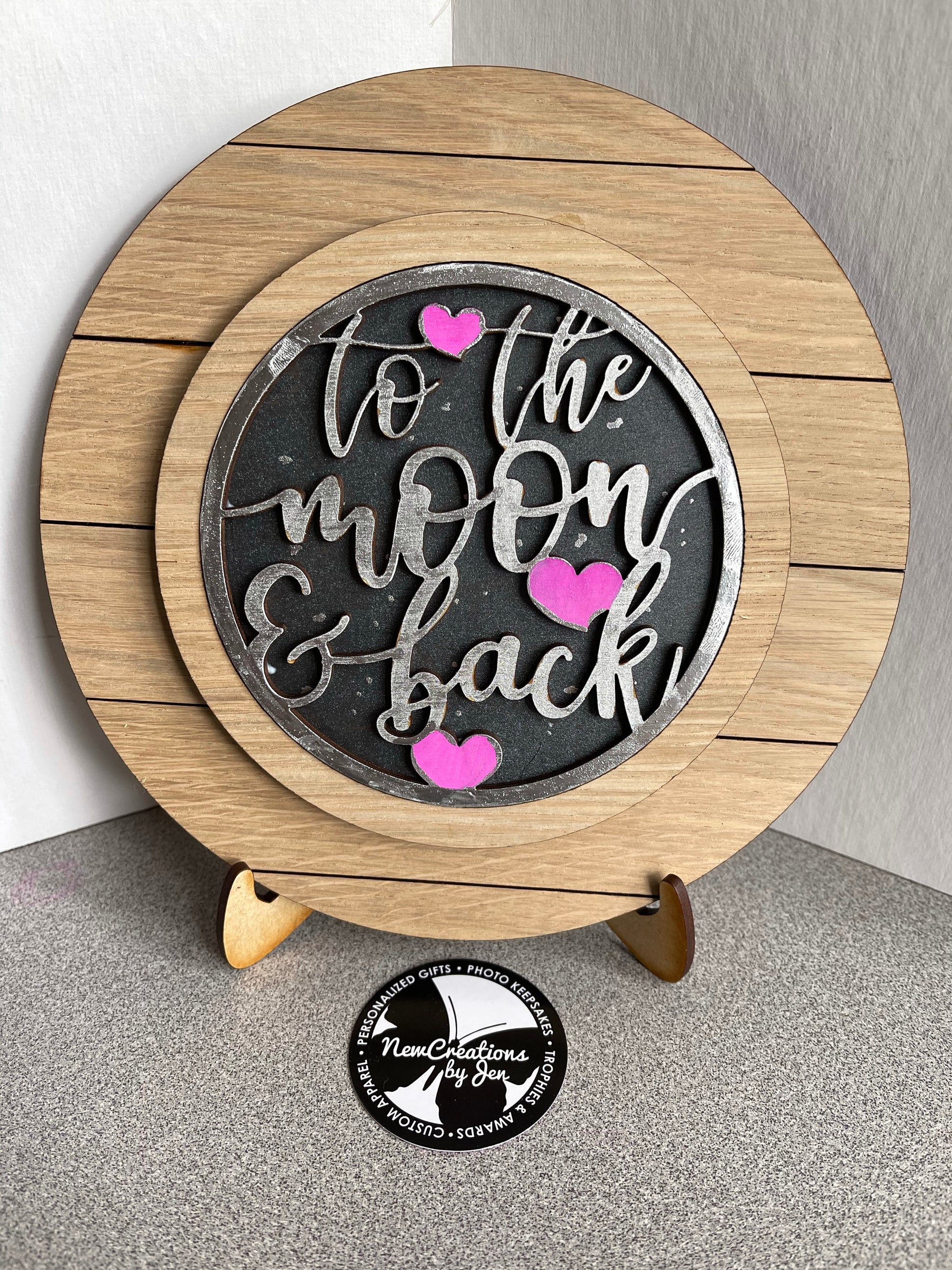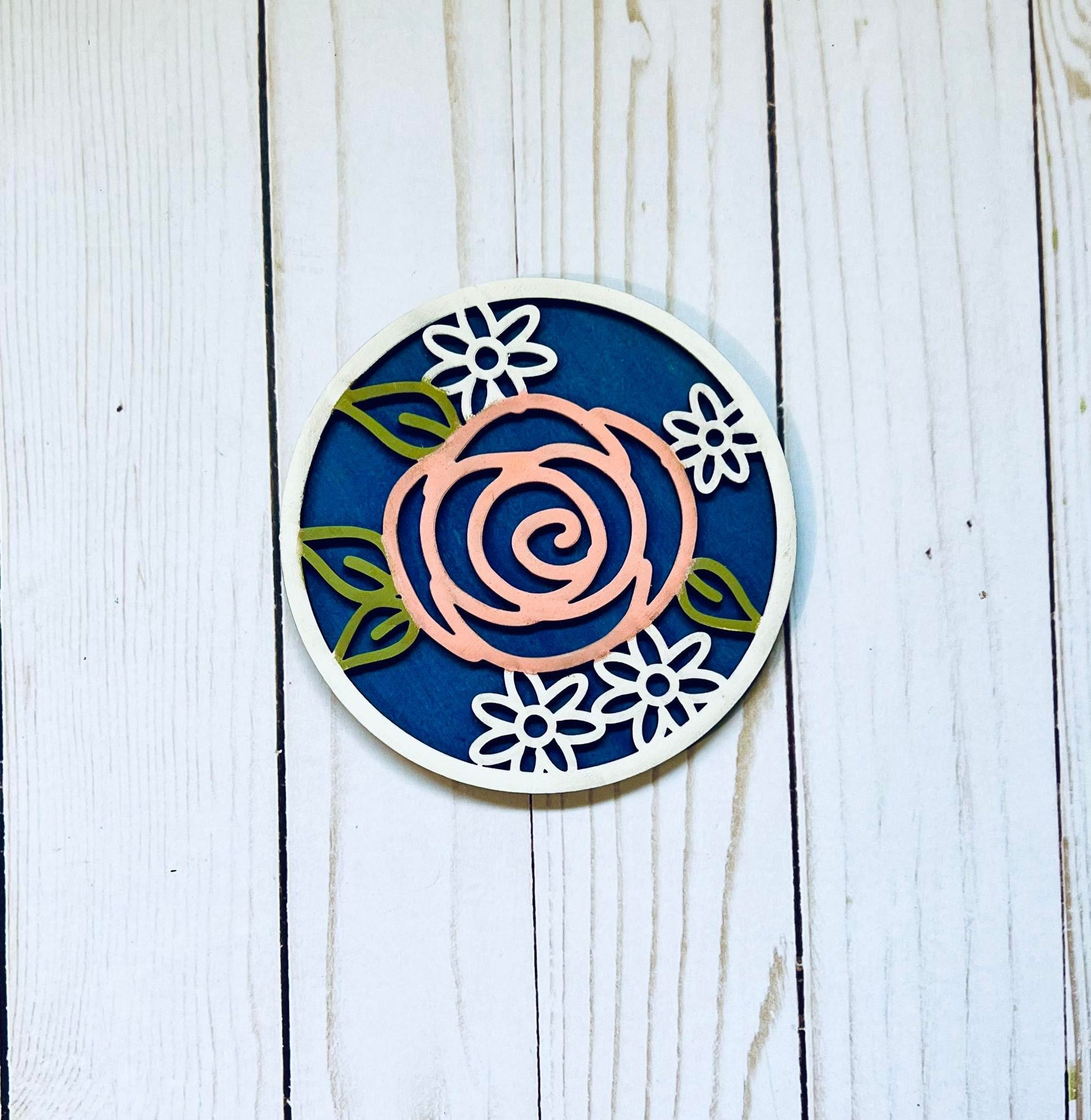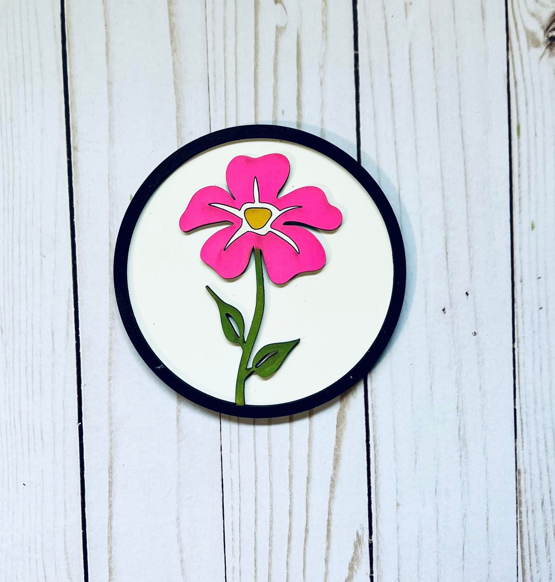 The round sign is cut out of 1/4” White Oak or similar wood and the stand and inserts are cut out of 1/8” White Birch and are ready to be painted. The stand doesn’t need to be painted but you can water down your paint and give it a beautiful whitewashed look or paint it any color you like. If you'd like a different wood for the stand or want to paint it yourself, just let us know.