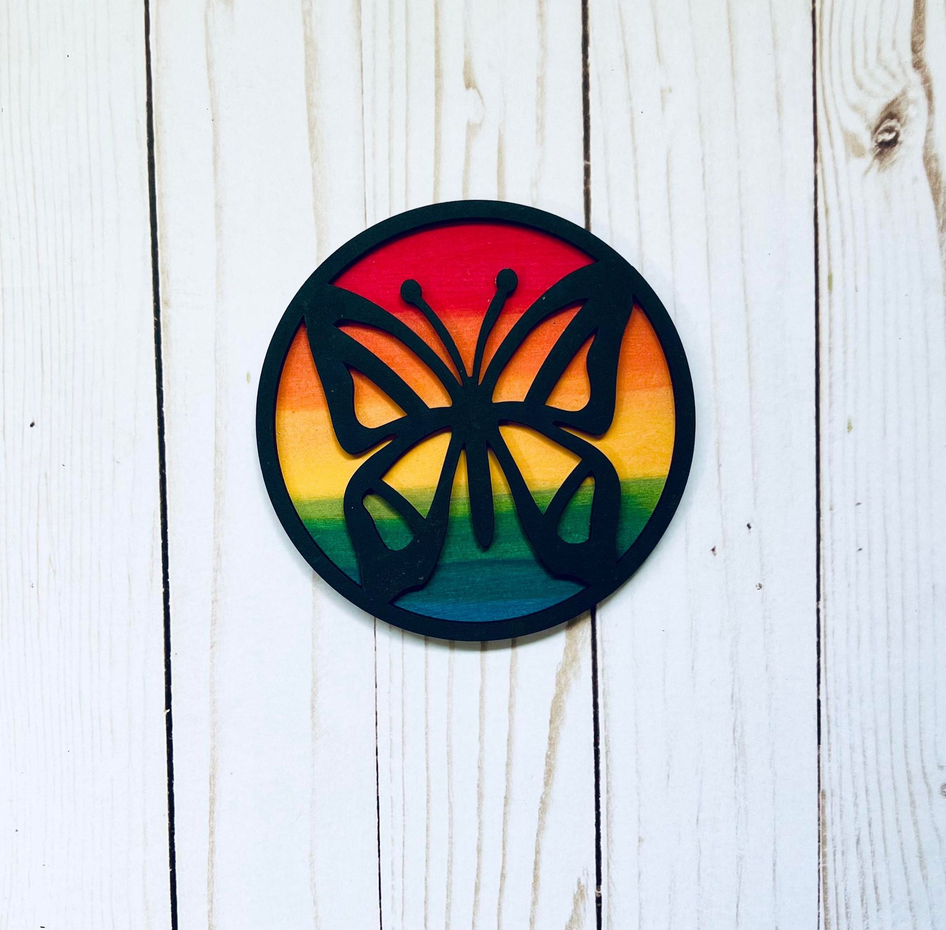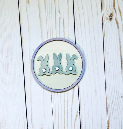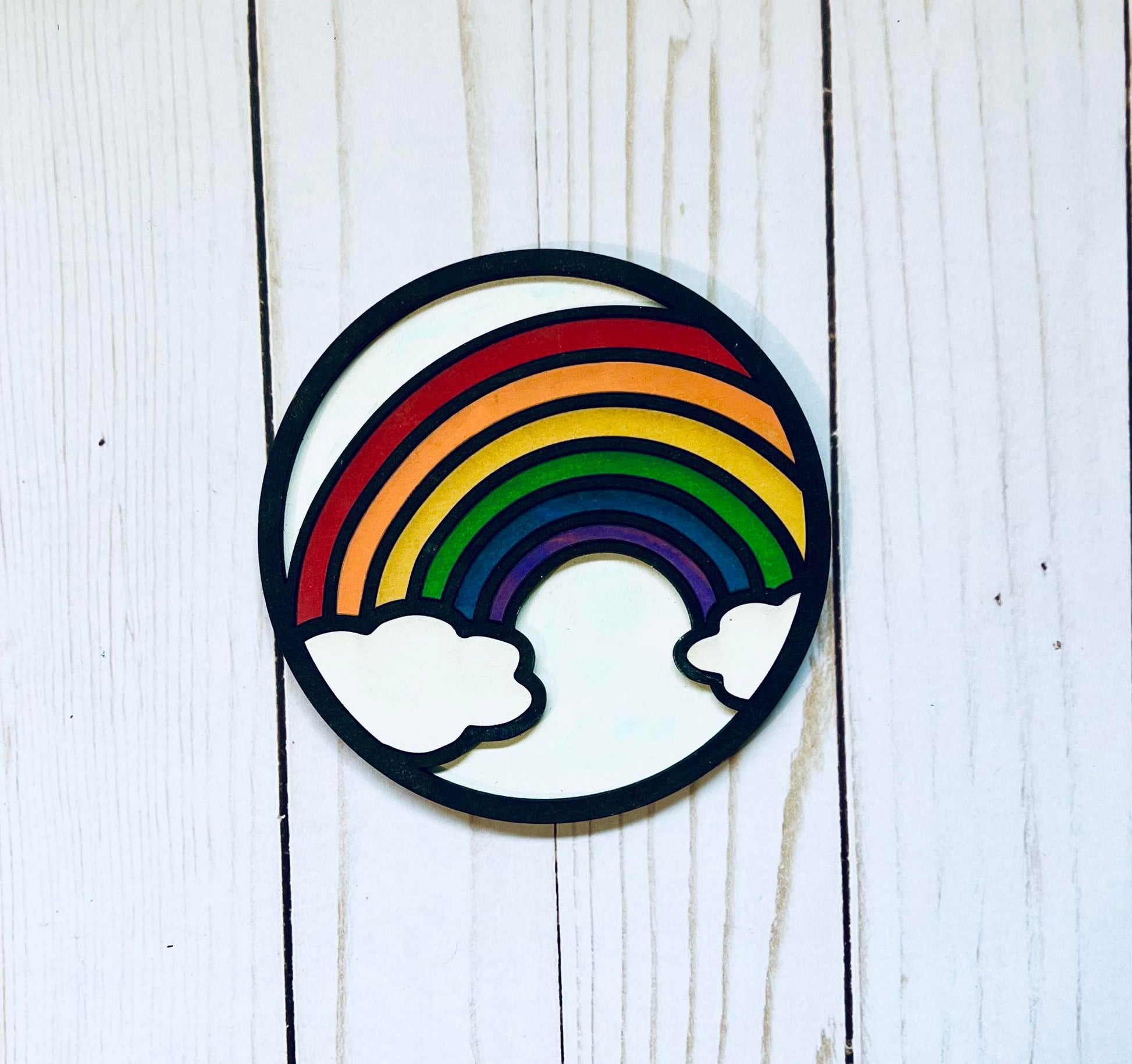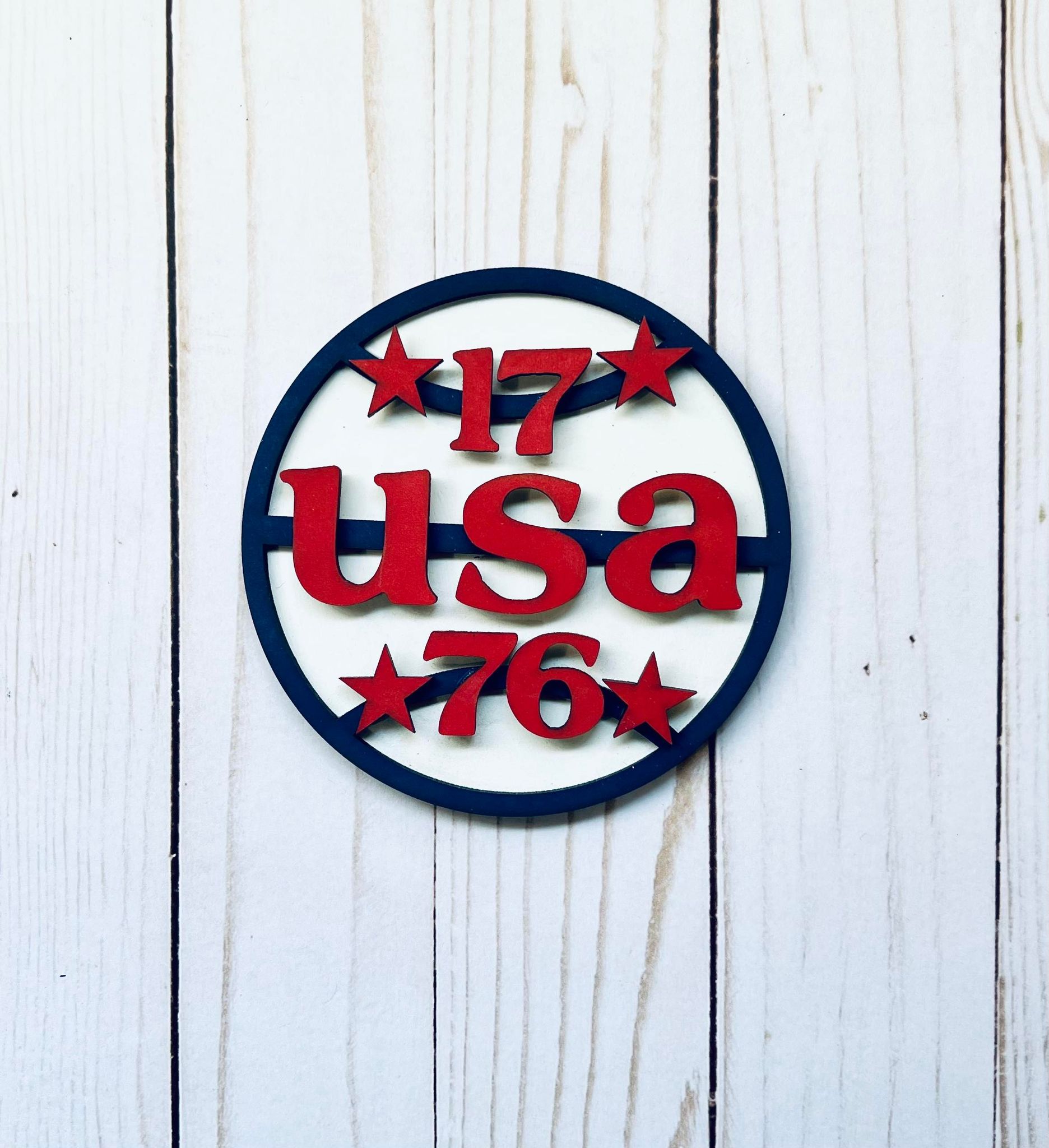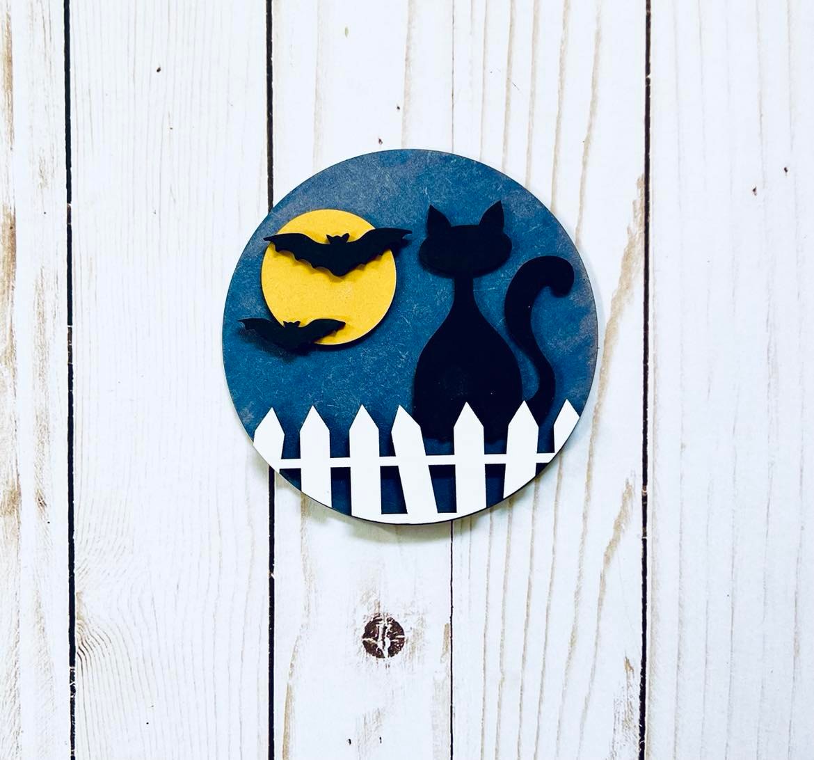 The round sign is cut out of 1/4” White Oak or similar wood and the stand and inserts are cut out of 1/8” White Birch and are ready to be painted. The stand doesn’t need to be painted but you can water down your paint and give it a beautiful whitewashed look or paint it any color you like. If you'd like a different wood for the stand or want to paint it yourself, just let us know.